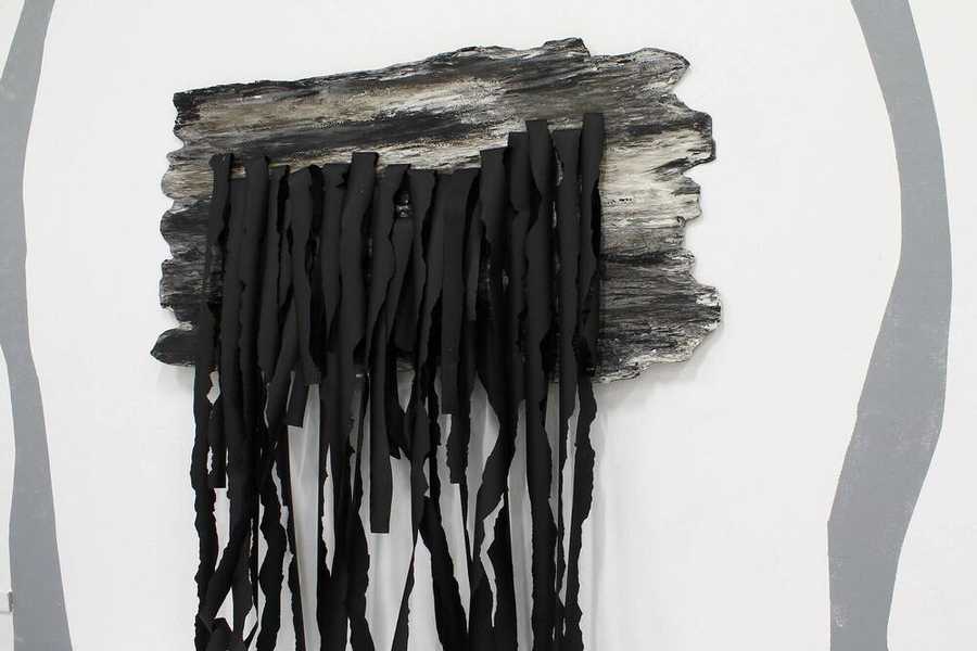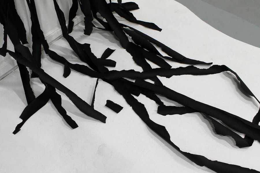 The title "Phase of something in between" came from my interest in Nobuo Sekine's "Phase of Nothingness". This installation was a play with the spatial obstacles to transferring an image I had while meditating. I used simple materials such as paper and clay to create something new and complex. An image that doesn't belong to this world, something in between painting, sculpture, and installation.